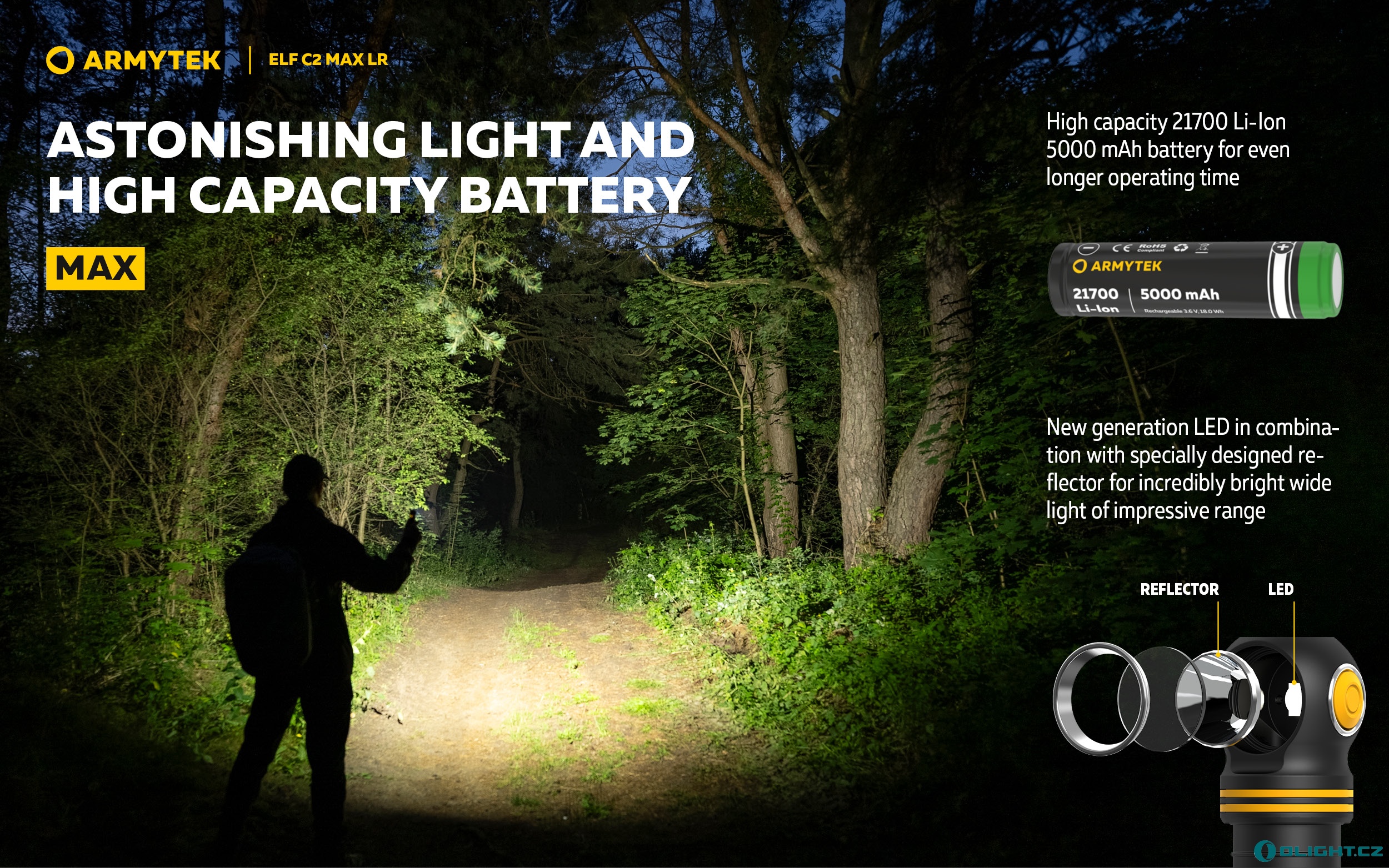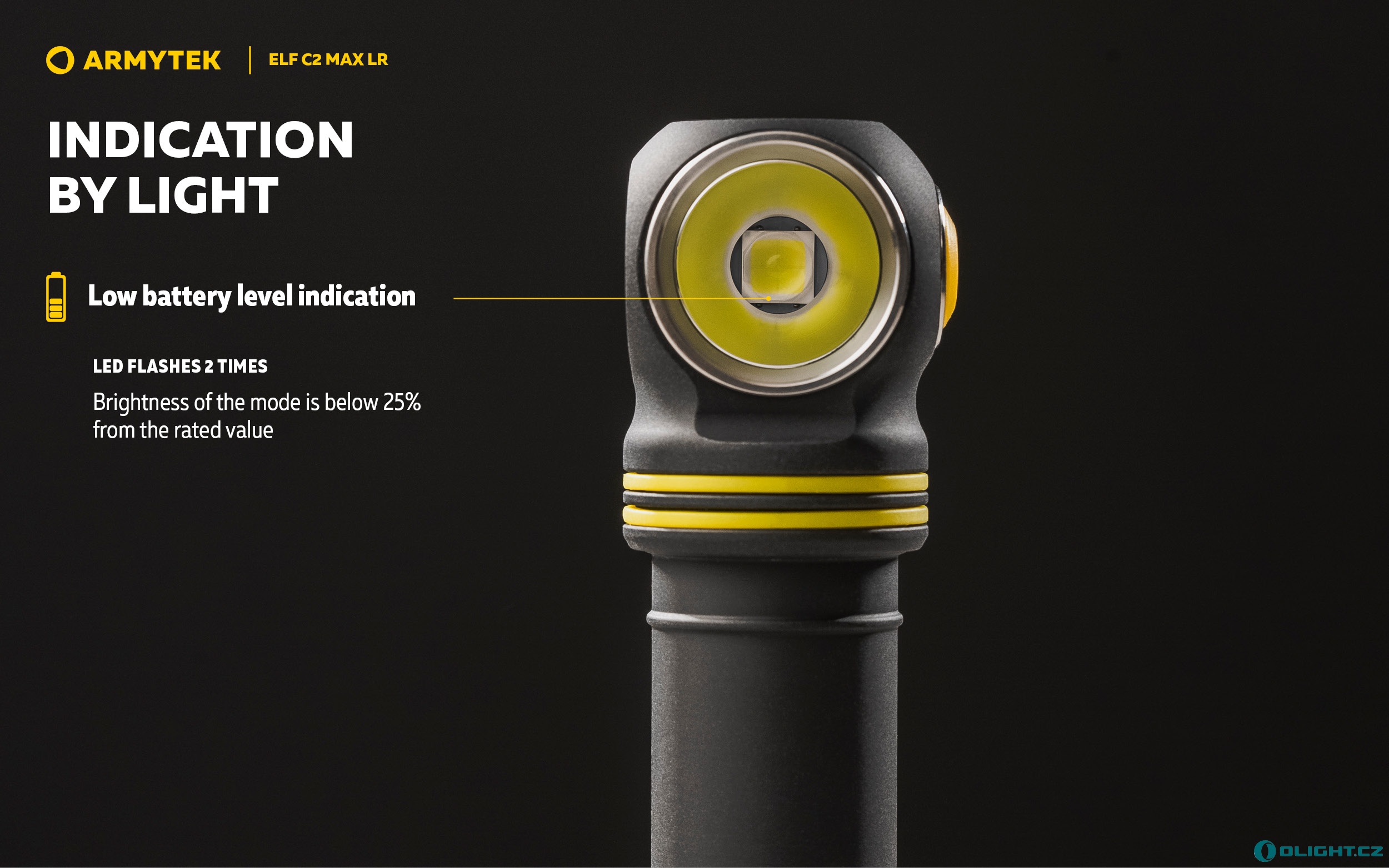 - Digitální regulace pro udržení konstantního jasu i během vybíjení baterií a při nízkých teplotách.