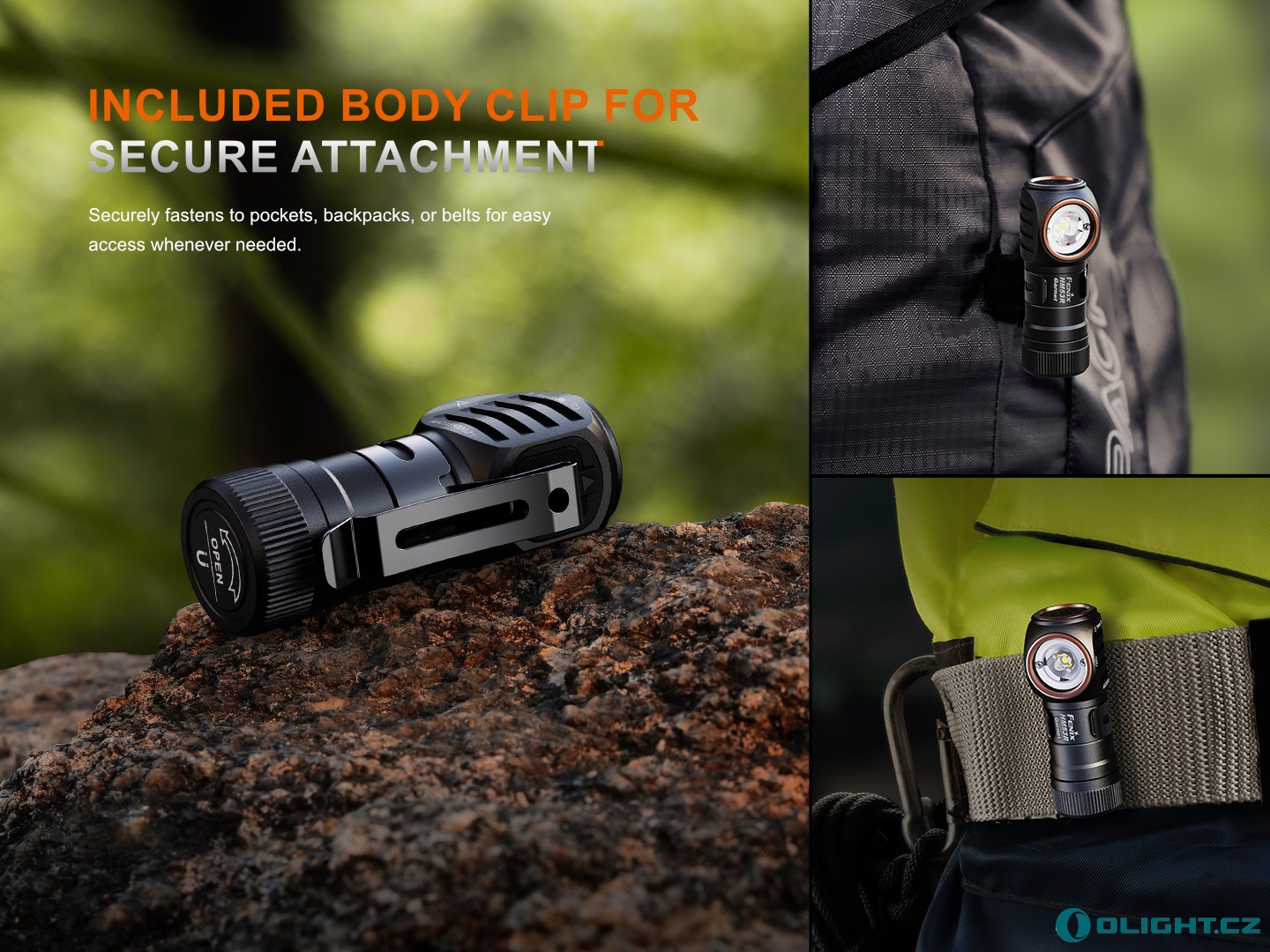 - Chytře řešený držák funguje zároveň jako spona, pokud čelovku z popruhu sundáte.