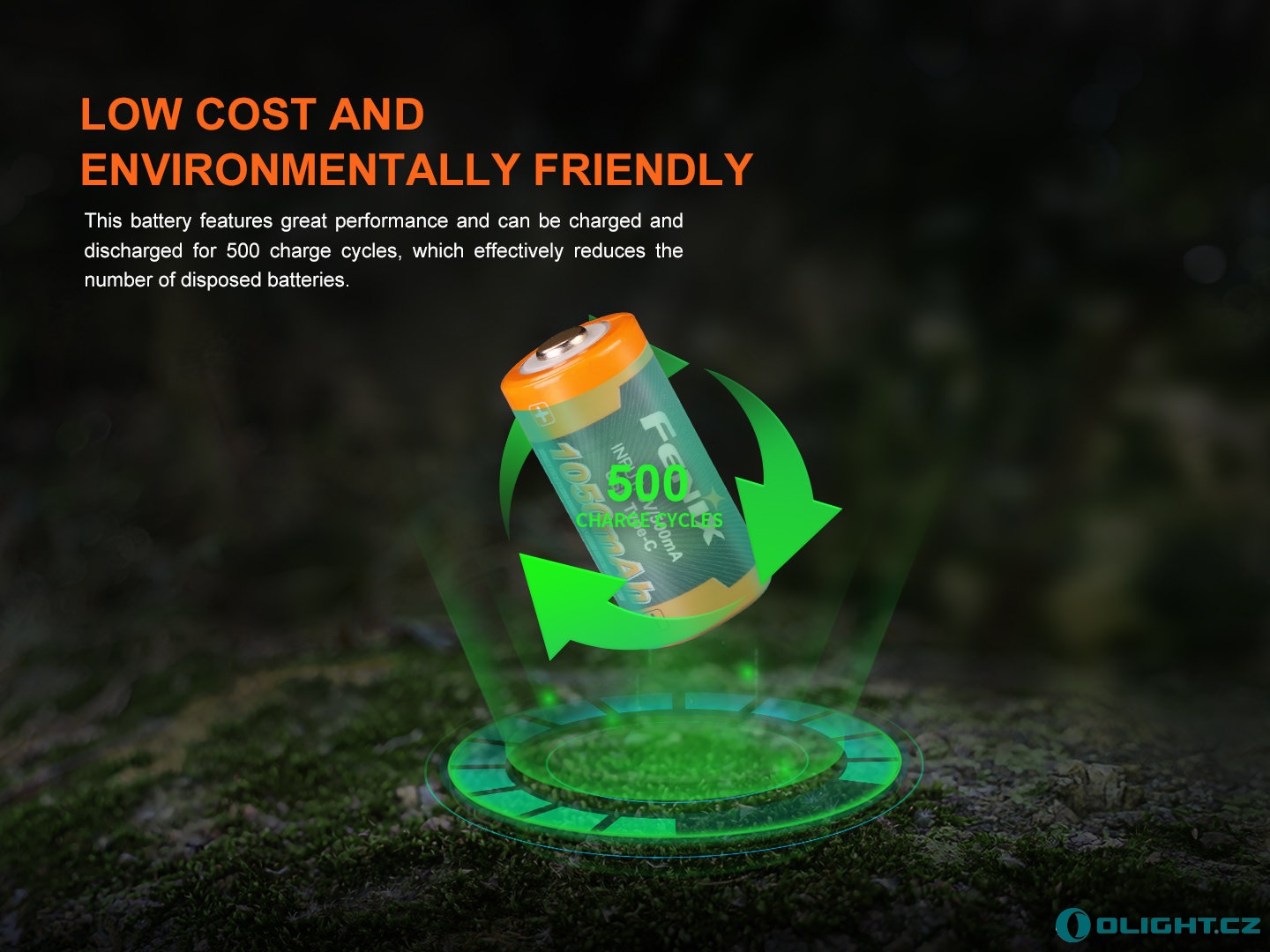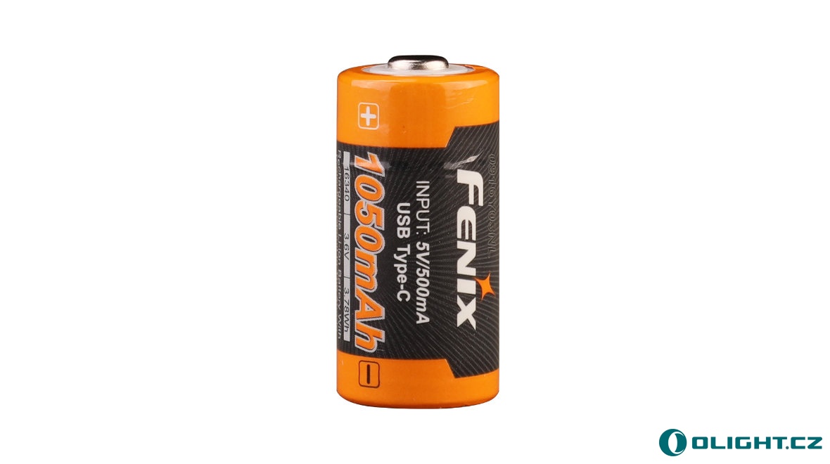 Fenix ARB-L16-1050UP je špičková nabíjecí Li-ion baterie velikosti RCR123A (16340) s obrovskou kapacitou 1050 mAh a vlastním nabíjecím USB-C konektorem.