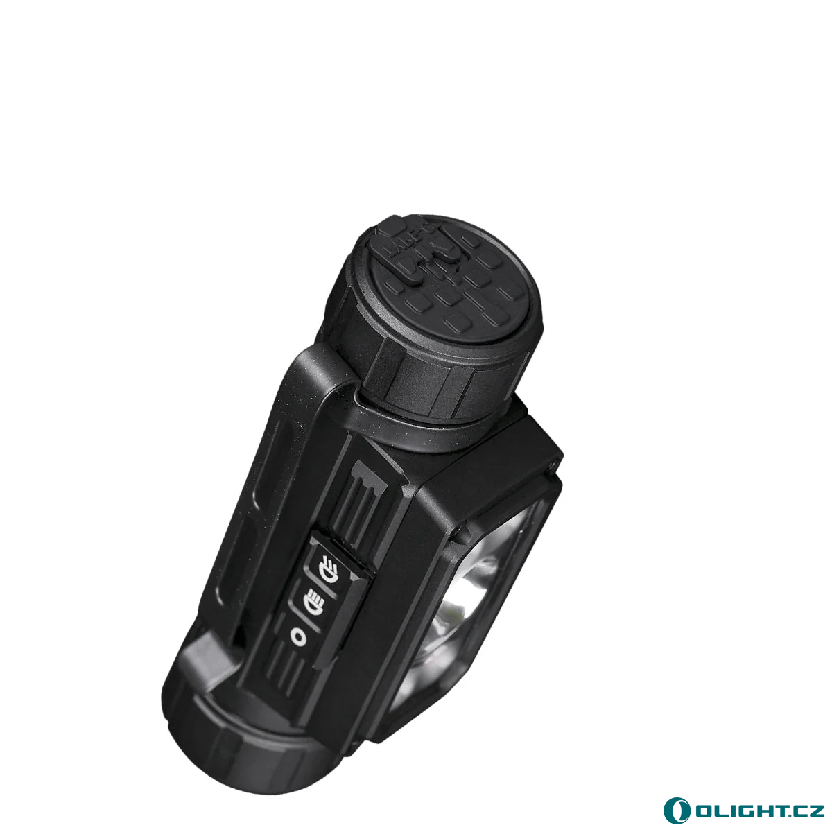 Uzamknutí tlačítka pro přenos čelovky - Při vypnuté svítilně stiskněte boční tlačítko třikrát za sebou. Uzamknutí je indikováno zablikáním barevných kontrolek. Odemknutí se opět provádí třemi krátkými stisky. Nechtěnému zapínání svítilny lze zabránit i lehkým povolením bateriového víčka, přeruší se tím elektrický kontakt a čelovka nejde zapnout. Preventivní přepnutí posuvného voliče na nějaký slabší reflektor může v případě náhodného sepnutí svítilny zamezit popálení a zpomalit vybíjení.