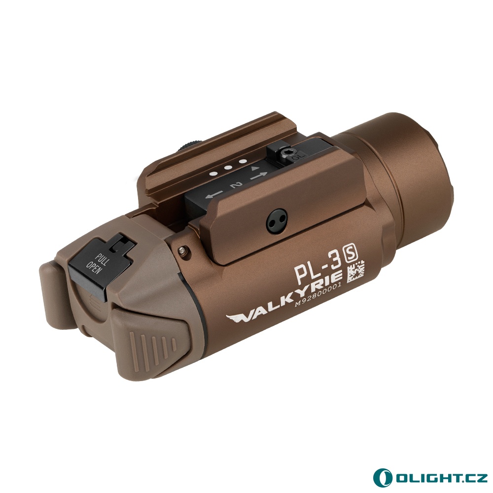 Nová verze oblíbené pistolové LED svítilny Olight PL-3S Valkyrie operuje s vysokým výkonem 1000 ANSI lumenů, dosvitem 200 metrů a oproti ostatním modelům prodlouženou výdrží. Při vysokém výkonu lze svítit přes 2 hodiny, zatímco v nízkém režimu 200 lumenů svítilna umožňuje až 5,3 hodiny provozu. Dva světelné režimy pak navíc doplňuje oslepující stroboskop o výkonu 1000 lumenů a frekvenci 13 Hz. Zdrojem energie jsou dvě lithiové CR123A baterie, svítilna případně podporuje i nabíjecí lithium-iontové akumulátory typu RCR123A. Ovládání je již klasick řešeno pomocí oboustraného ovládání, které jde na ruku i levákům. Montáž na zbraňovou lištu 1913 Picatinny a Glock je jednoduchá, bez nutnosti použít nářadí. Pro jistotu je však možné šroub dotáhnout mincí nebo přiloženým imbusem.
