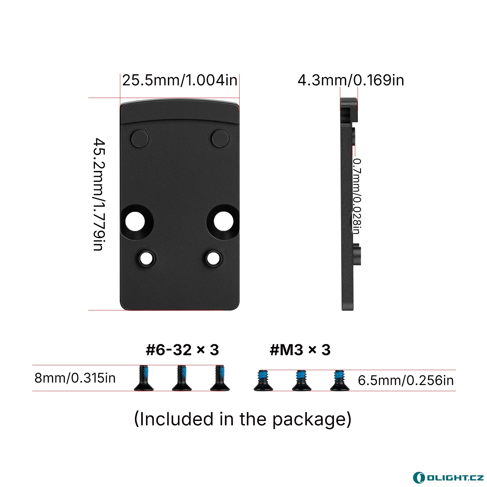 Díky promyšlené konstrukci a tloušťce pouhých 4,3 mm zvyšuje adaptér optickou osu jen minimálně, což přispívá k přirozenějšímu zalícení. Instalace je rychlá a intuitivní – balení obsahuje vše potřebné včetně sady montážních šroubů a nářadí. Adaptér je přímo navržen pro kolimátory řady Olight Osight, ale díky univerzálnímu standardu je kompatibilní i s řadou konkurenčních modelů.